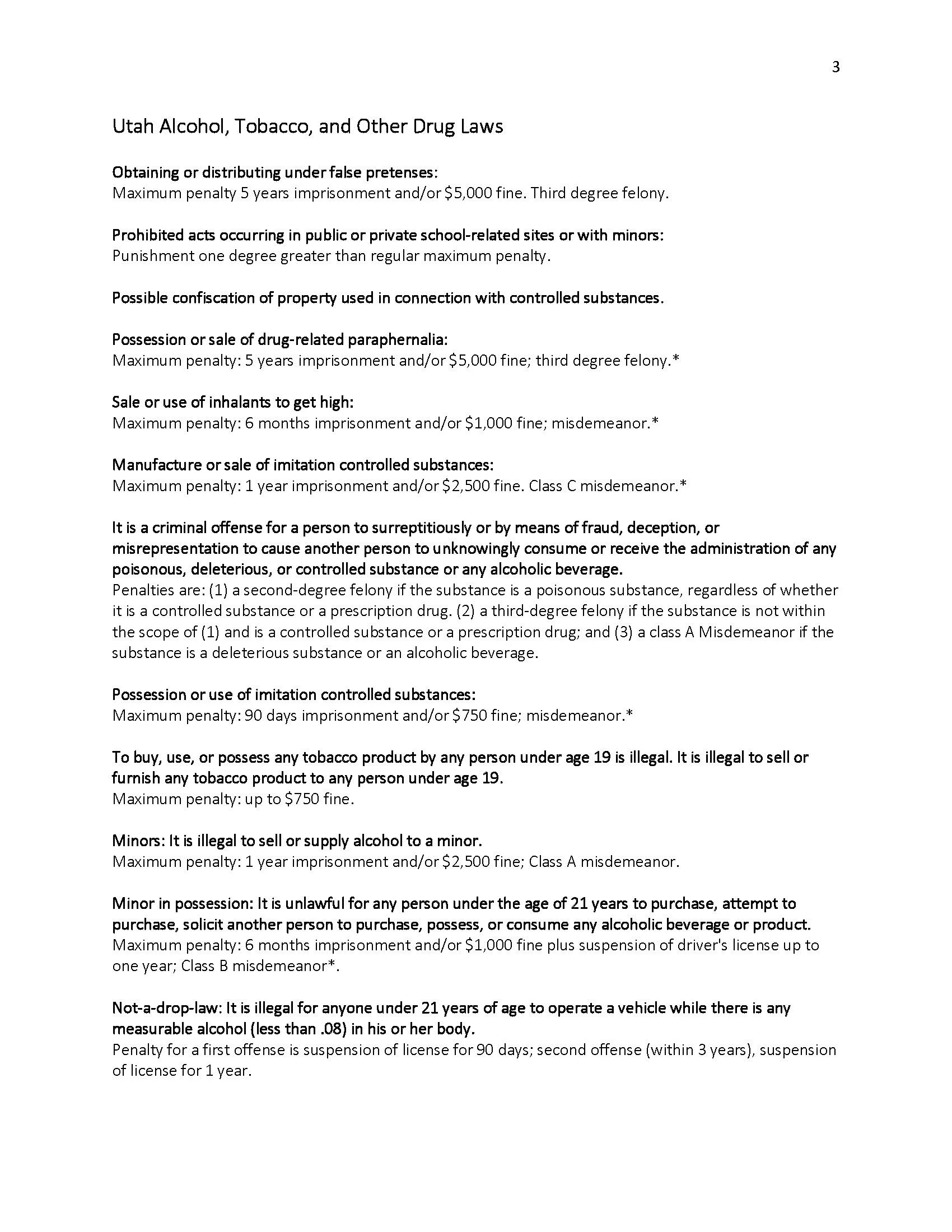 Since the organization I chose was the University of Utah, it’s safe to assume most people the document will be addressed to are college students. Due to unfortunate on-campus trends like binge drinking, I wanted to make sure that the consequences of breaking the law were apparent.